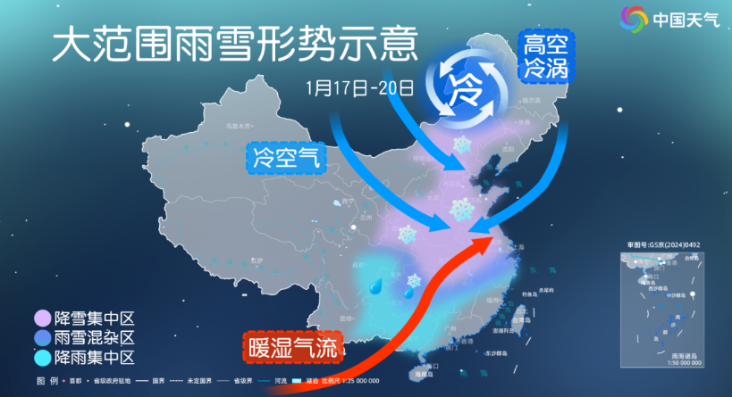本周末开始,中东部大范围雨雪强势回归,将出现入冬以来最强雨雪冰冻天气过程。