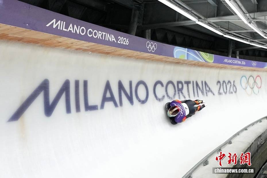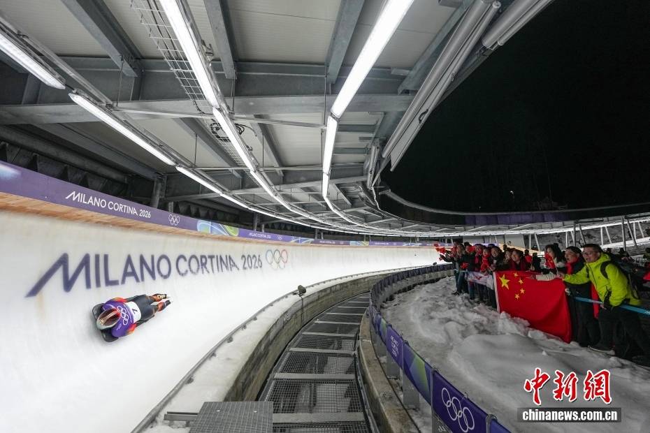 当地时间2月13日晚,2026年米兰-科尔蒂纳冬奥会男子钢架雪车比赛在科尔蒂纳滑行中心继续进行。中国队选手林勤炜最终以总成绩3分45秒61名列第8。图为林勤炜在比赛中滑行。中新社记者 崔楠 摄