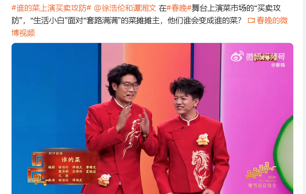 2026年央视春晚开播撒贝宁的眉毛再上热搜有网友表示“今年的眉毛好像还是有点像蜡笔小新”