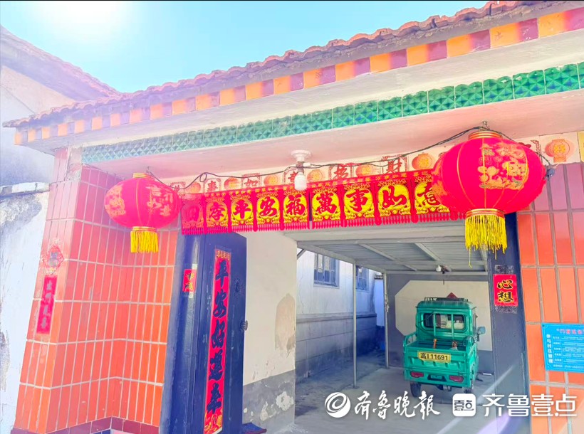 浆糊一抹,春联一贴,年味便从指尖酝酿开来。山东春天风大,再用胶带封一遍,更为结实牢固。